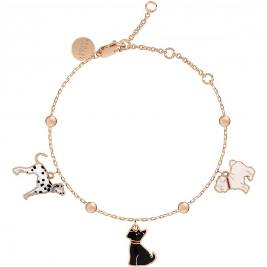 Γυναικείο βραχιόλι της εταιρείας Radley London  απο ατσάλι σε ροζ χρυσό χρώμα, με τρείς φιγούρες σκύλων.