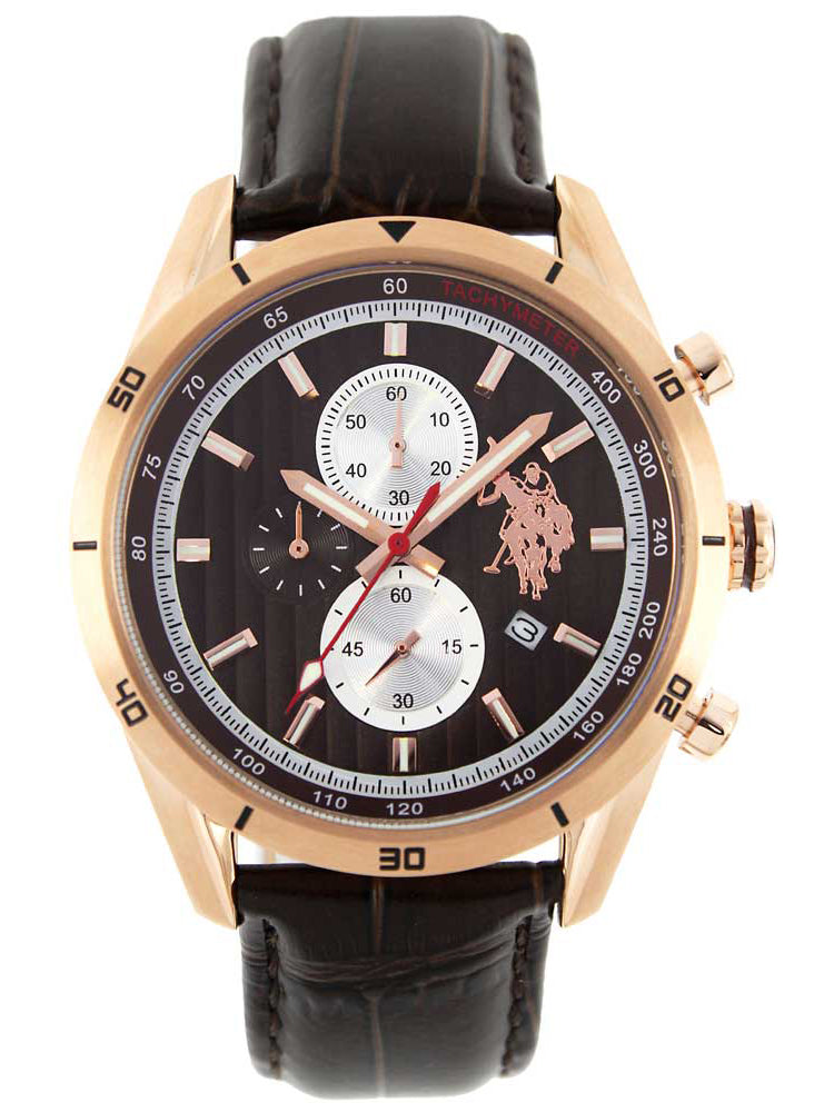 U.S. POLO Rose Gold Brown Leather Chronograph USP4530BR
