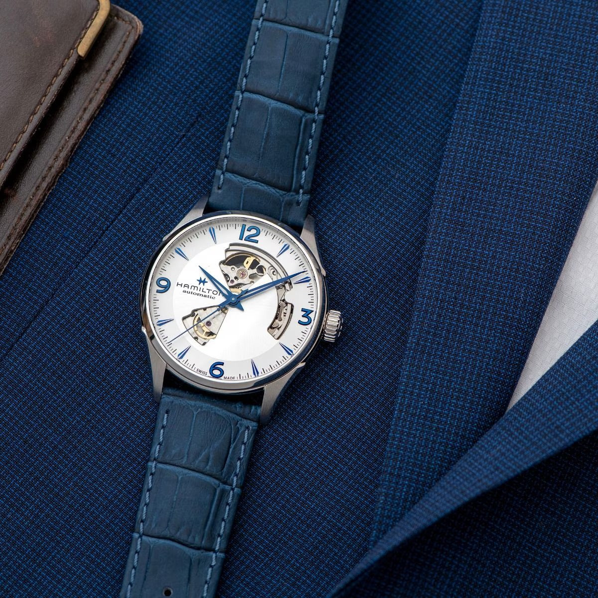 HAMILTON Jazzmaster Open Heart Auto Blue Leather Strap H32705651