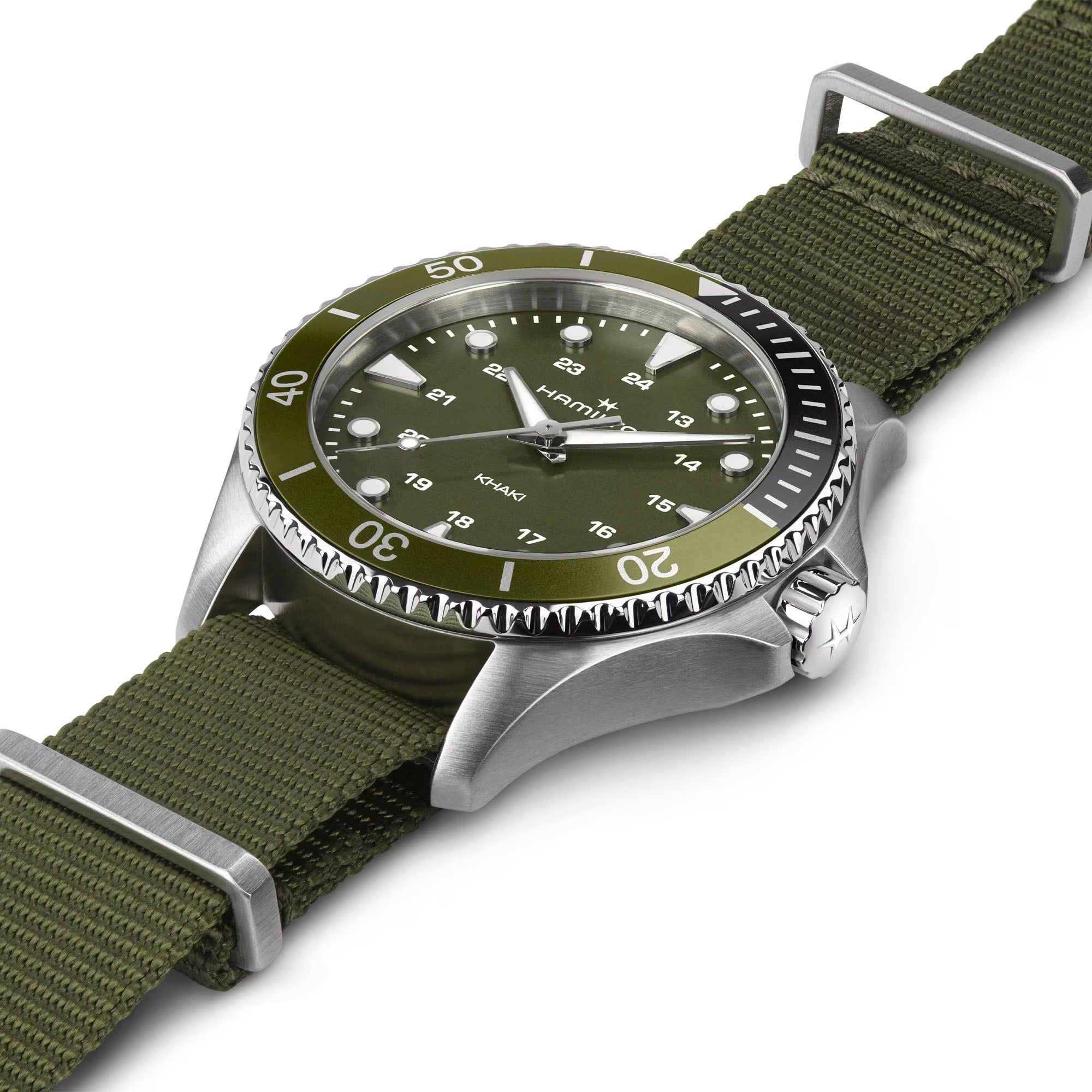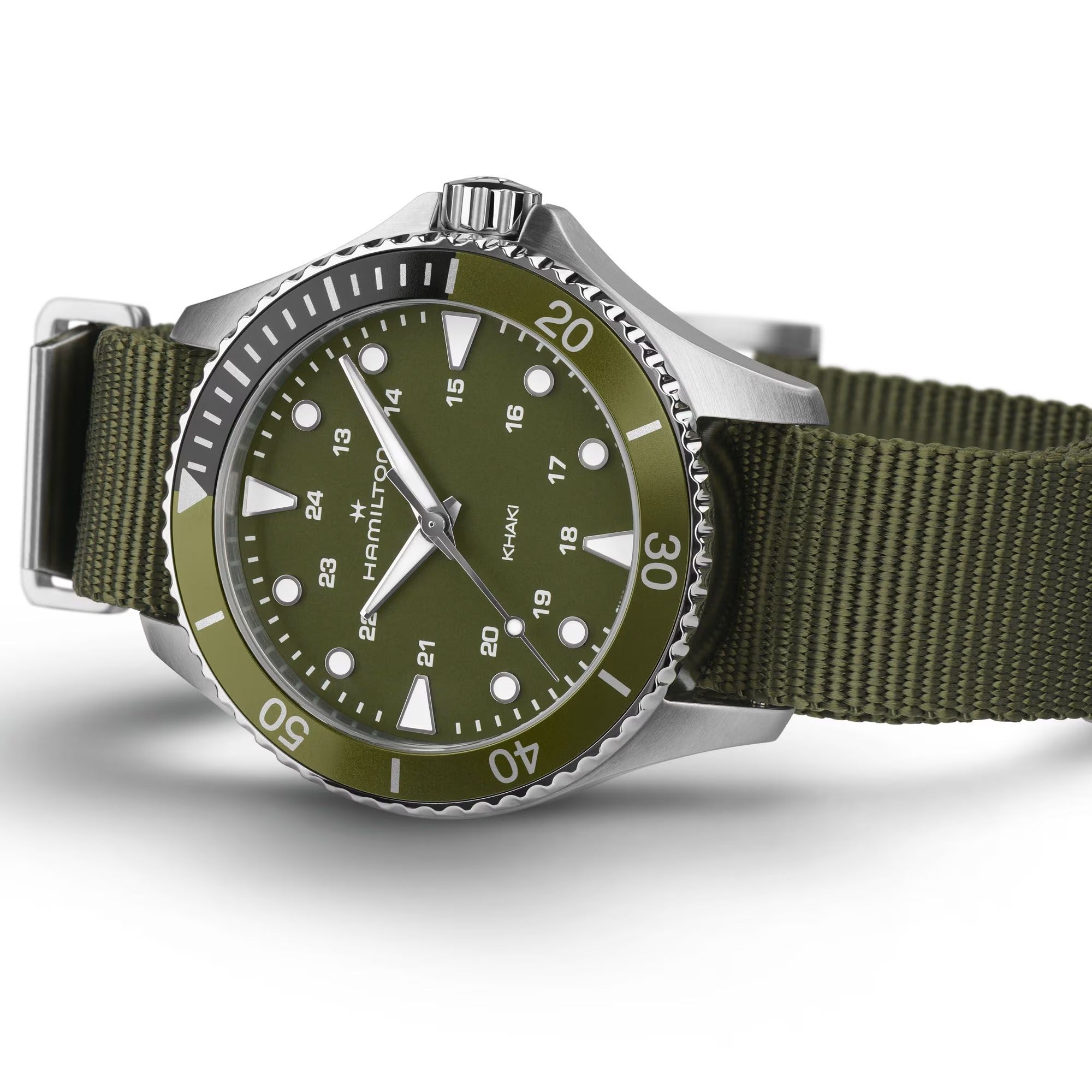 HAMILTON Khaki Navy Scuba Quartz Green NATO textile strap H82241961