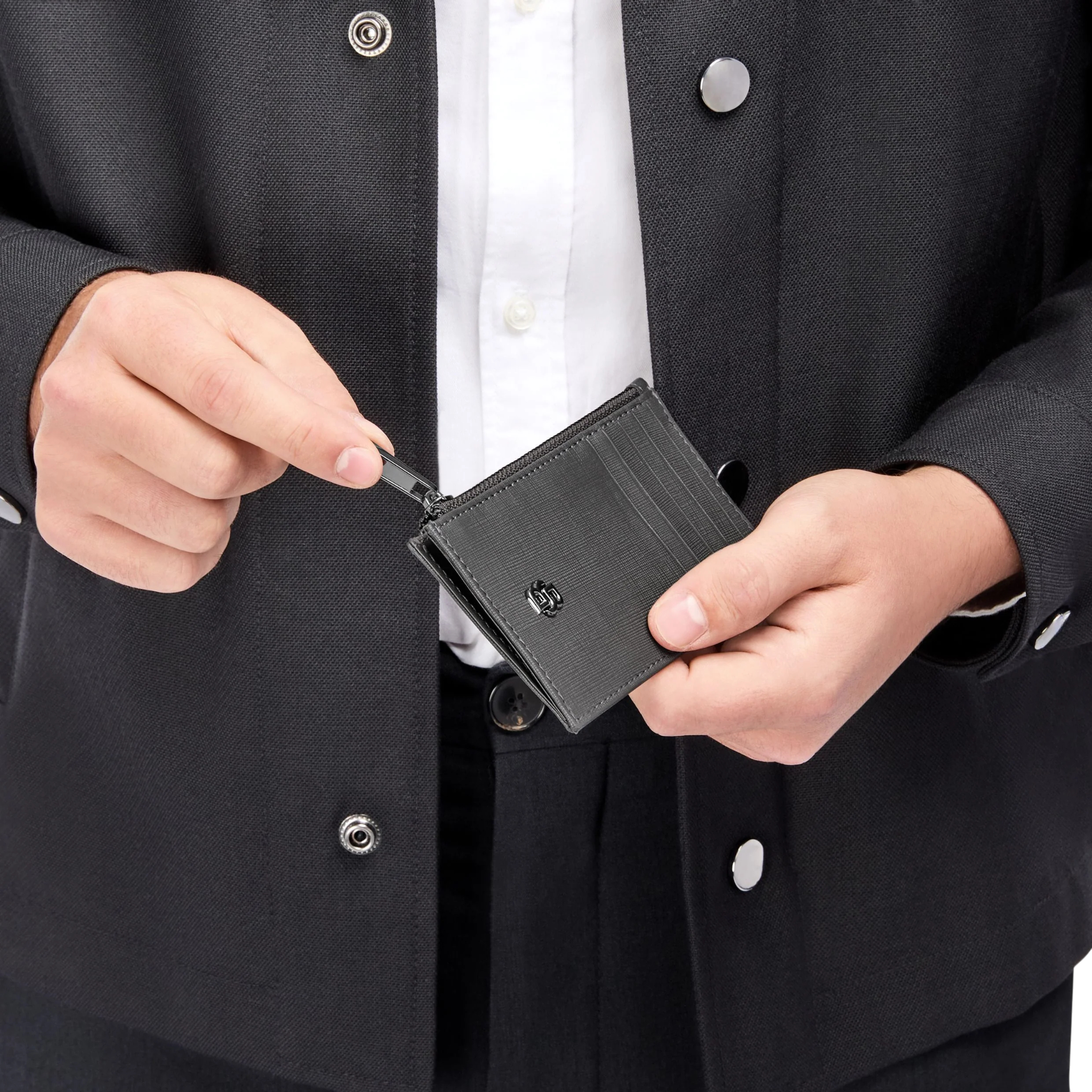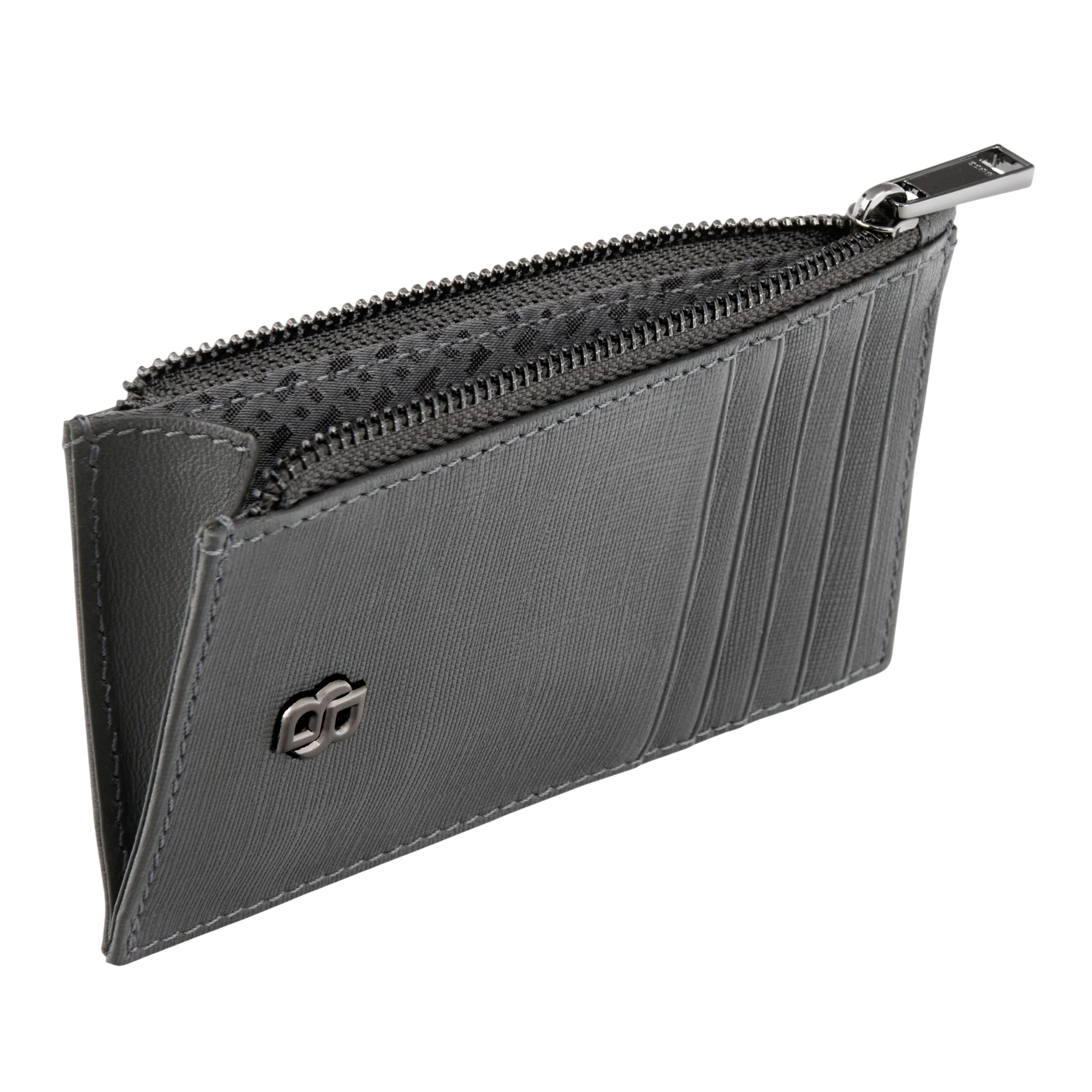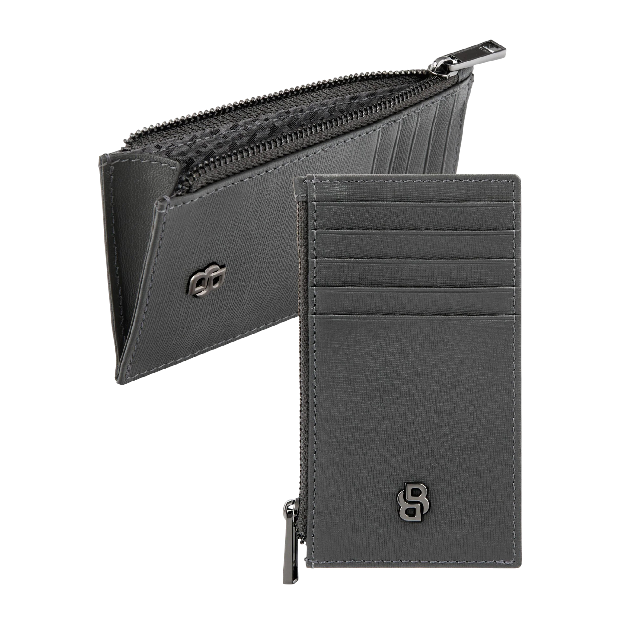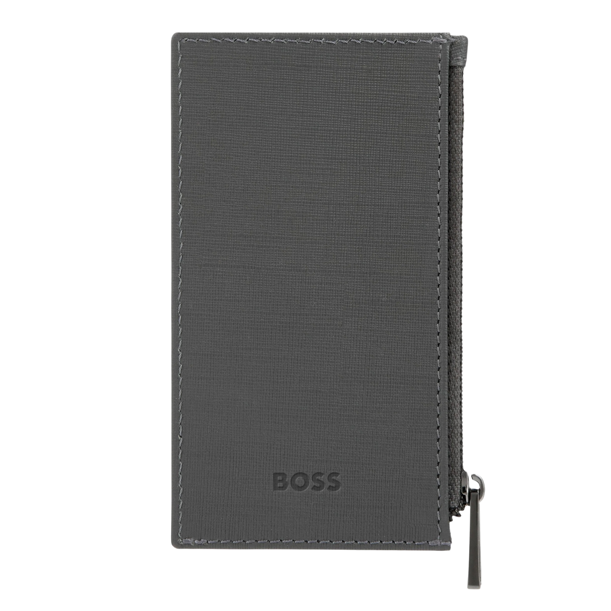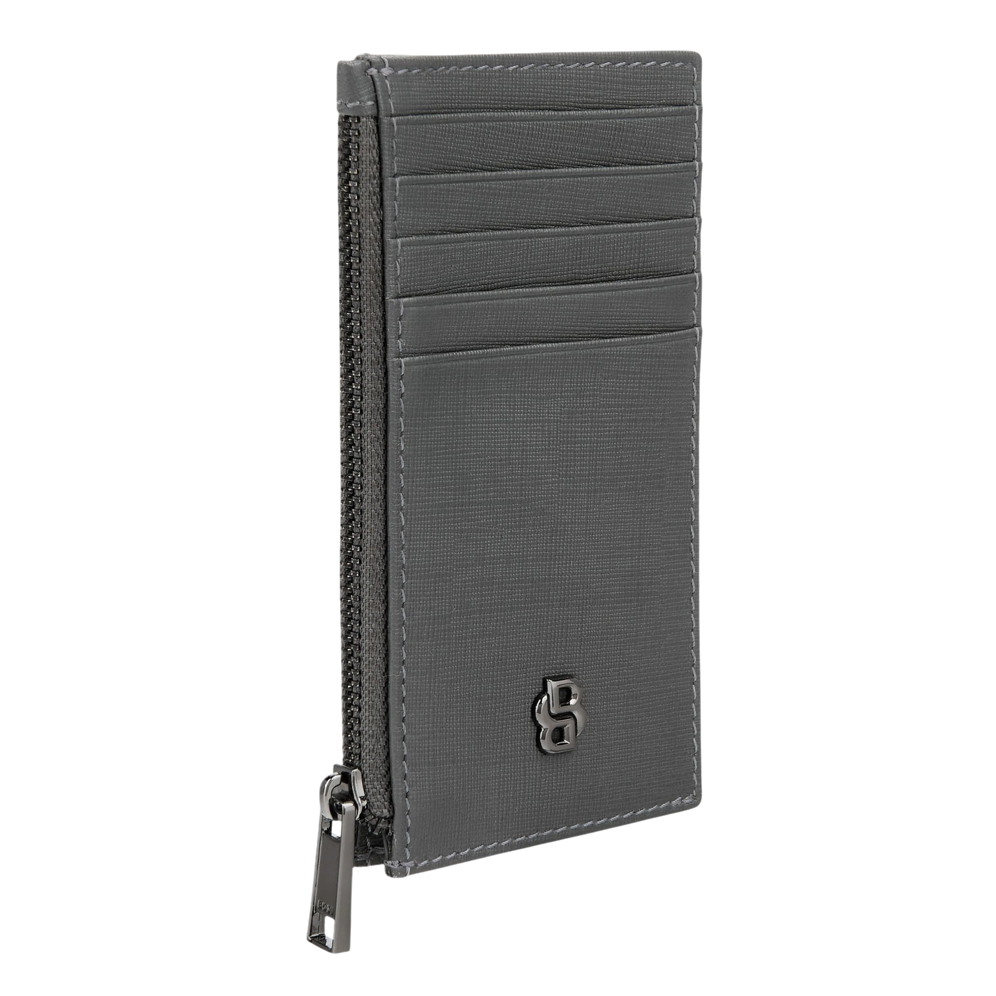 HUGO BOSS Card holder zip Double B Saffiano Grey ΔΕΡΜΑΤΙΝΟ ΠΟΡΤΟΦΟΛΙ HLK526H