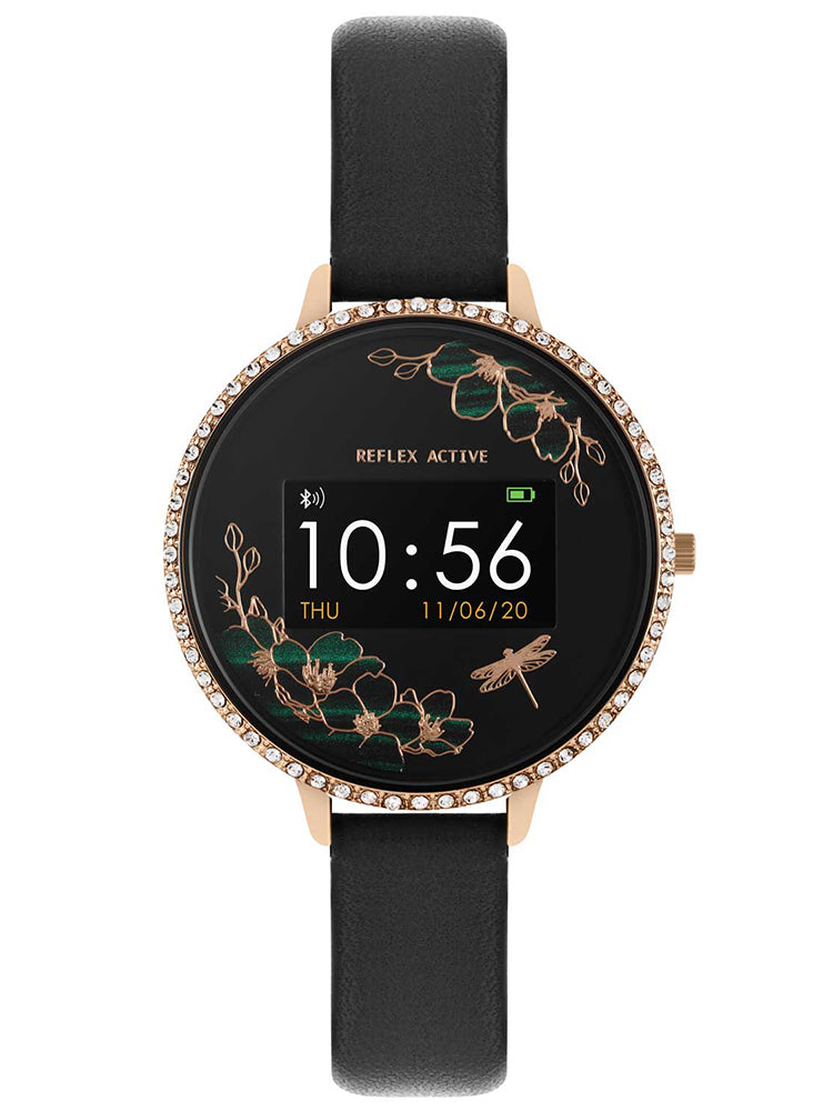 Reflex Active - Το πιο έξυπνο ρολόι! Παρουσιάζουμε το έξυπνο ρολόι Reflex Active Series 3 με έγχρωμη οθόνη αφής, παρακολούθηση δραστηριοτήτων και διάρκεια μπαταρίας έως και 7 ημέρες. Οι δυνατότητες του περιλαμβάνουν: λήψη κλήσεων και ειδοποιήσεων, ανάγνωση μηνυμάτων και email, παρακολούθηση συγκεκριμένων δραστηριοτήτων (τρέξιμο/περπάτημα/ποδηλασία/αναρρίχηση) σε πραγματικό χρόνο, μέτρηση απόστασης/βημάτων/θερμίδων, ζωντανές ενημερώσεις καιρού, έλεγχος κάμερας selfie, λειτουργία εύρεσης τηλεφώνου, παρακολούθηση ύπνου, ξυπνητήρι και υπενθυμίσεις. Με καντράν με σχέδιο και στεφάνη σε ροζ χρυσό χρώμα με ζιργκόν και μαύρο λουράκι. Κάθε ρολόι πωλείταιι σε συσκευασία δώρου και περιλαμβάνει εγχειρίδιο οδηγιών, φορτιστή USB (σφραγισμένη επαναφορτιζόμενη μπαταρία) και 2 χρόνια εγγύηση κατασκευαστή. Ανθεκτικό στις γρατσουνιές και αδιάβροχο σε τυχαία επαφή με το νερό. Κατεβάστε τη δωρεάν εφαρμογή Reflex Active τώρα για να εξερευνήσετε περισσότερες λεπτομέρειες. Συμβατό με IOS και Android.