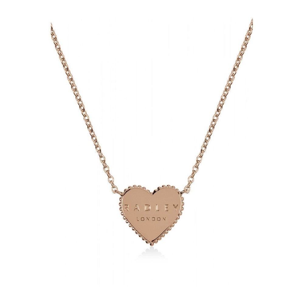 Γυναικείο κολιέ της εταιρείας Radley London απο ροζ επιχρυσωμένο ασήμι, σε σχήμα καρδιάς με το λογότυπο της εταιρείας.