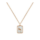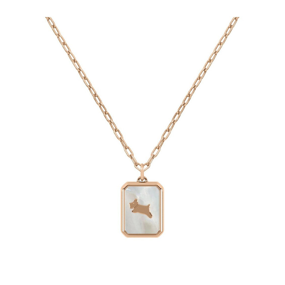 Γυναικείο  κολιέ της εταιρείας Radley London απο ατσάλι, σε ροζ χρυσό χρώμα, με κρεμαστό με λευκό ιριδίζον σμάλτο και  φιγούρα σκύλου.