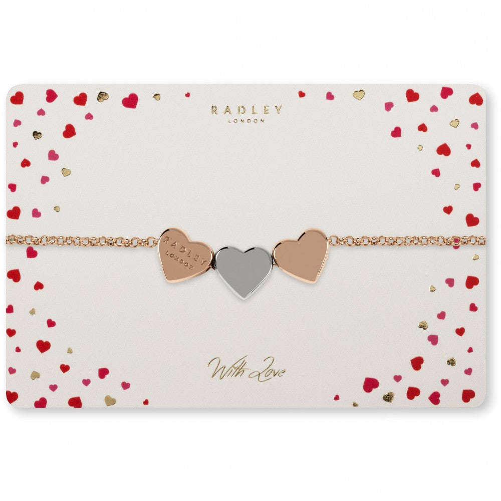 Γυναικείο βραχιόλι της εταιρείας Radley London  απο ατσάλι σε ροζ χρυσό χρώμα, με διακοσμητικές καρδιές.