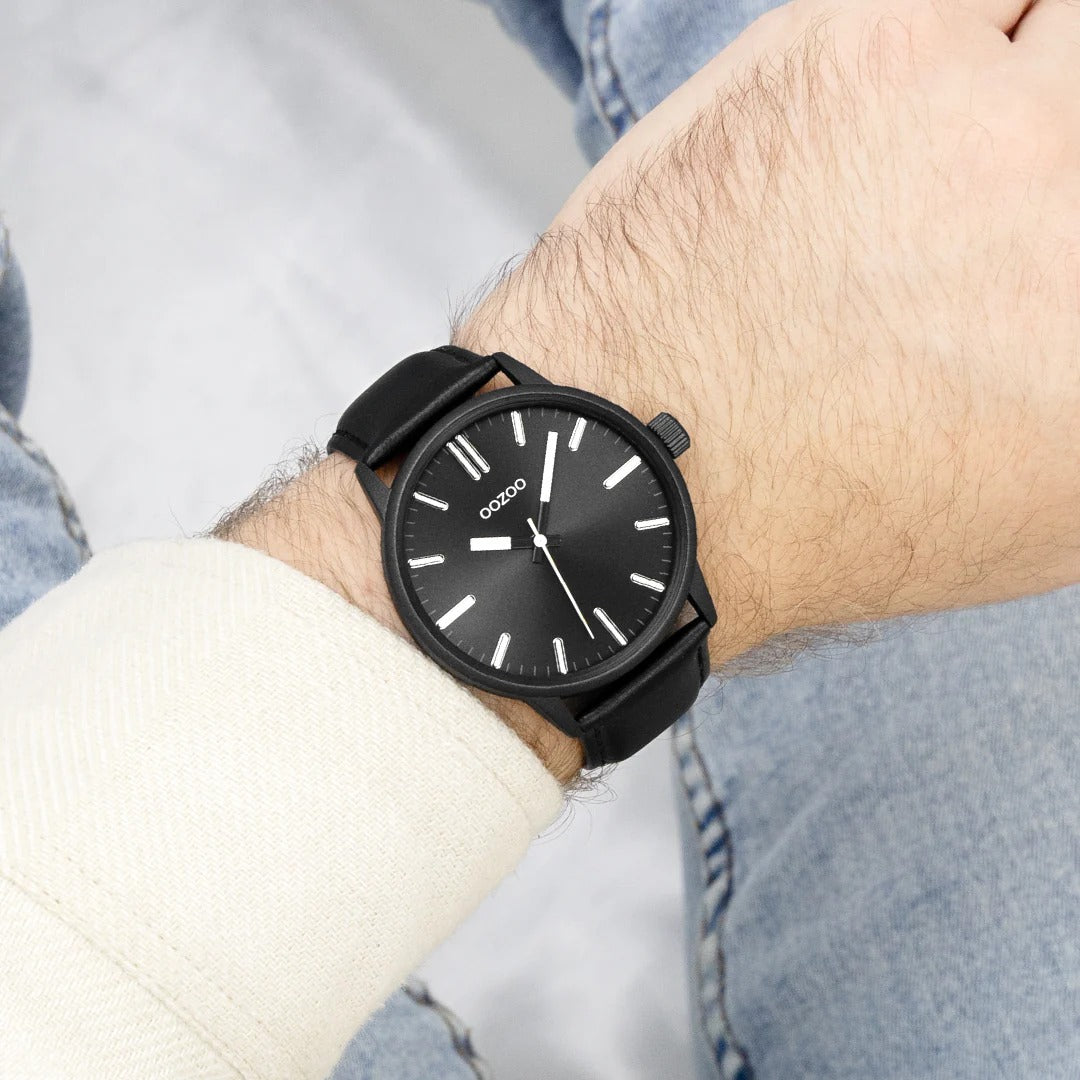 OOZOO Τimepieces Black Leather Strap C11404