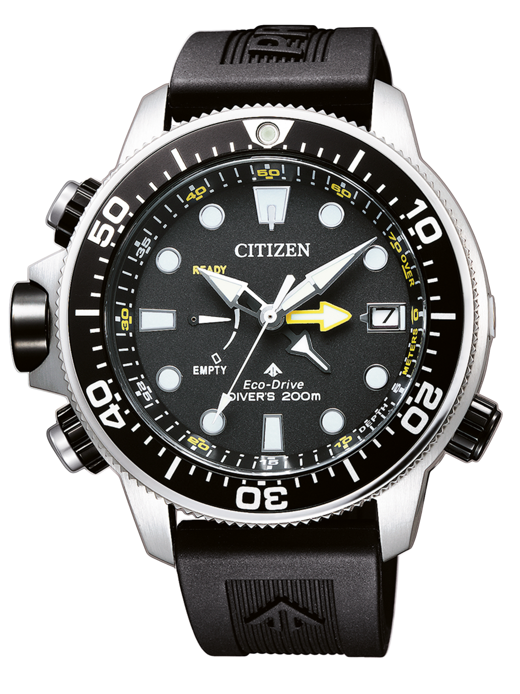 CITIZEN Aqualand Promaster Eco-Drive Divers Black Rubber Strap BN2036-14E