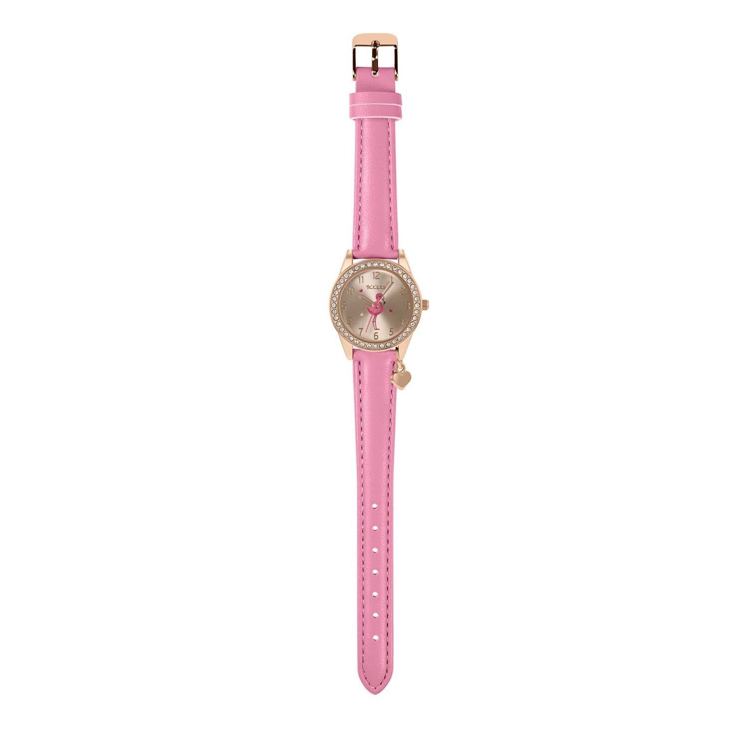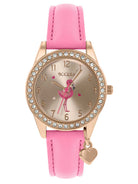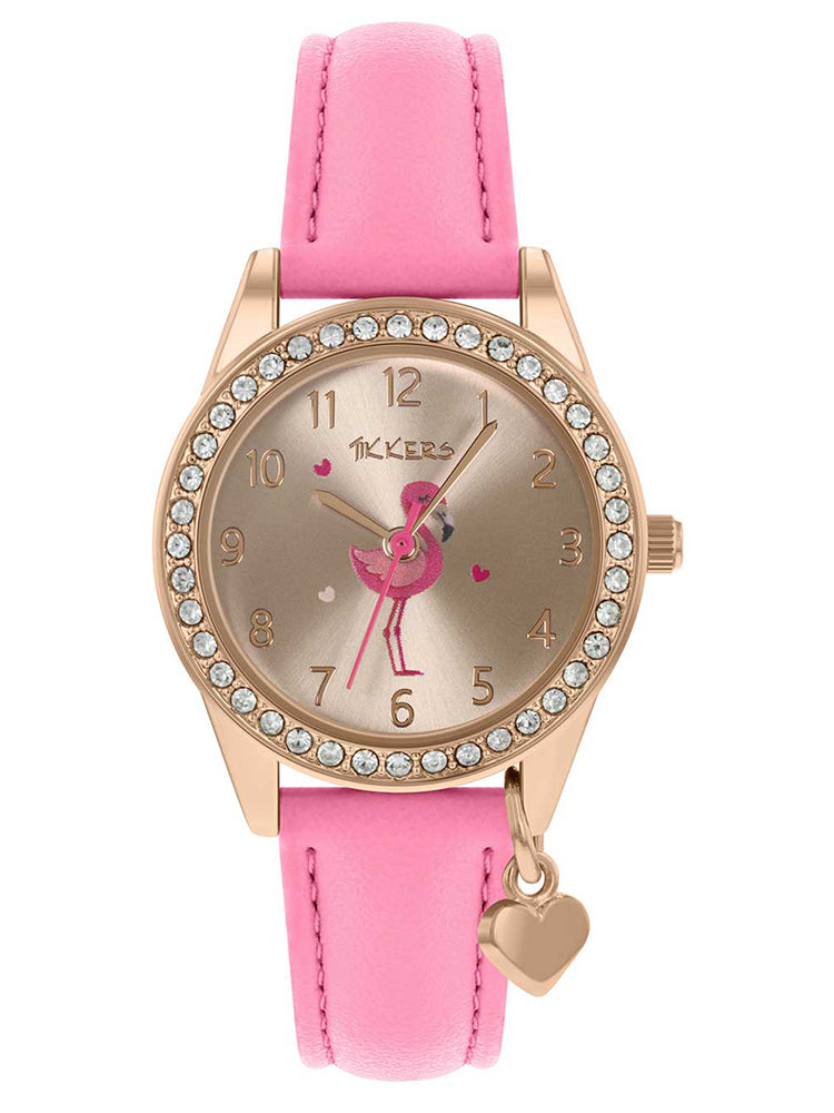 Το Tikkers flamingo sparkle είναι ένα από τα πιο μαγικά ρολόγια μας! Ένα υπέροχο φλαμίνγκο κοσμεί το καντράν από ροζ χρυσό, πλαισιωμένο με αστραφτερές πέτρες και φινίρισμα με ένα αστραφτερό γούρι καρδιάς. Συμπληρώνεται από ένα έντονο ροζ λουράκι από δερματίνη.