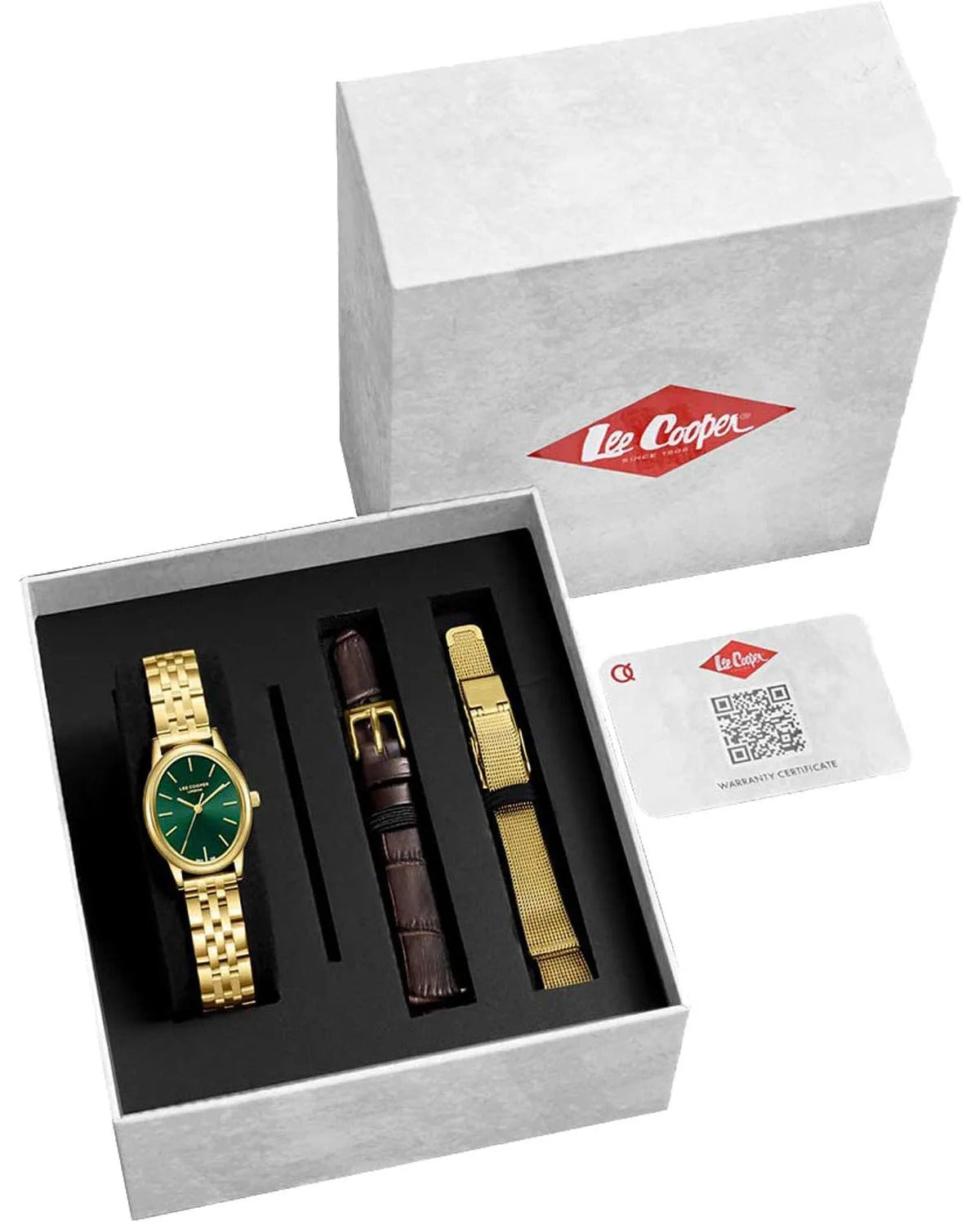 Το ρολόι προσφέρεται σε κουτί δώρου μαζί με ένα επιπλέον μεταλλικό μπρασελέ τύπου mesh και ένα δερμάτινο λουράκι.