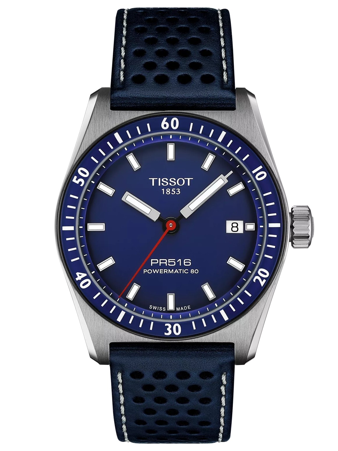TISSOT PR516 Powermatic 80 Blue Leather Strap T1494071604100