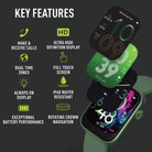 ΛΕΙΤΟΥΡΓΙΕΣ: Bluetooth 5.0, WhatsApp, Απάντηση κλήσεων, Ασκήσεις αναπνοής, Ειδοποιήσεις social media, Ειδοποιήσεις για τον καιρό, Ειδοποίηση κλήσεων, Έλεγχος μουσικής, Ενημέρωση ενυδάτωσης, Έξυπνες ειδοποιήσεις και εμφάνιση μηνυμάτων SMS και άλλα, Καταγραφή αθλητικής δραστηριότητας, Λειτουργία εύρεσης ρολογιού, Λειτουργία εύρεσης τηλεφώνου, Μέτρηση απόστασης, Μέτρηση θερμίδων, Μετρητής βημάτων, Παρακολούθηση ύπνου, Προσφέρει λειτουργία υπενθύμισης έμμηνου κύκλου για τις κυρίες, Σύνδεση GPS, Χειρισμός κάμερας από απόσταση
