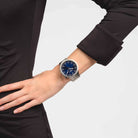 Χαρακτηριστικό σε αυτό το μεγάλο ρολόι από ανοξείδωτο ατσάλι είναι το ναυτικό μπλε καντράν με εφέ ηλιαχτίδας στο φινίρισμα, λευκή εκτύπωση και γκρι δείκτες που λάμπουν στο σκοτάδι. Το ρυθμιζόμενο μπρασελέ από ανοξείδωτο ατσάλι και οι αμμοβολισμένες κάσα και στεφάνη ολοκληρώνουν την εντυπωσιακή εμφάνιση αυτού του μεγάλου ρολογιού σε ναυτικό μπλε.