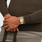 Αυτό το κομψό ρολόι από ανοξείδωτο ατσάλι διαθέτει κίτρινο sun-brushed καντράν με τυπωμένο μοτίβο λουλουδιών σε ανοιχτό κίτρινο χρώμα, ασημί ωροδείκτη και λεπτοδείκτη που λάμπουν στο σκοτάδι και ασημί δείκτη δευτερολέπτων. Το ρολόι διαθέτει γυαλισμένη κάσα από ανοξείδωτο ατσάλι και ταιριαστή στεφάνη με χαραγμένες ενδείξεις ώρας. Το look ολοκληρώνεται με το γυαλισμένο μπρασελέ από ανοξείδωτο ατσάλι με κούμπωμα τύπου πεταλούδα.