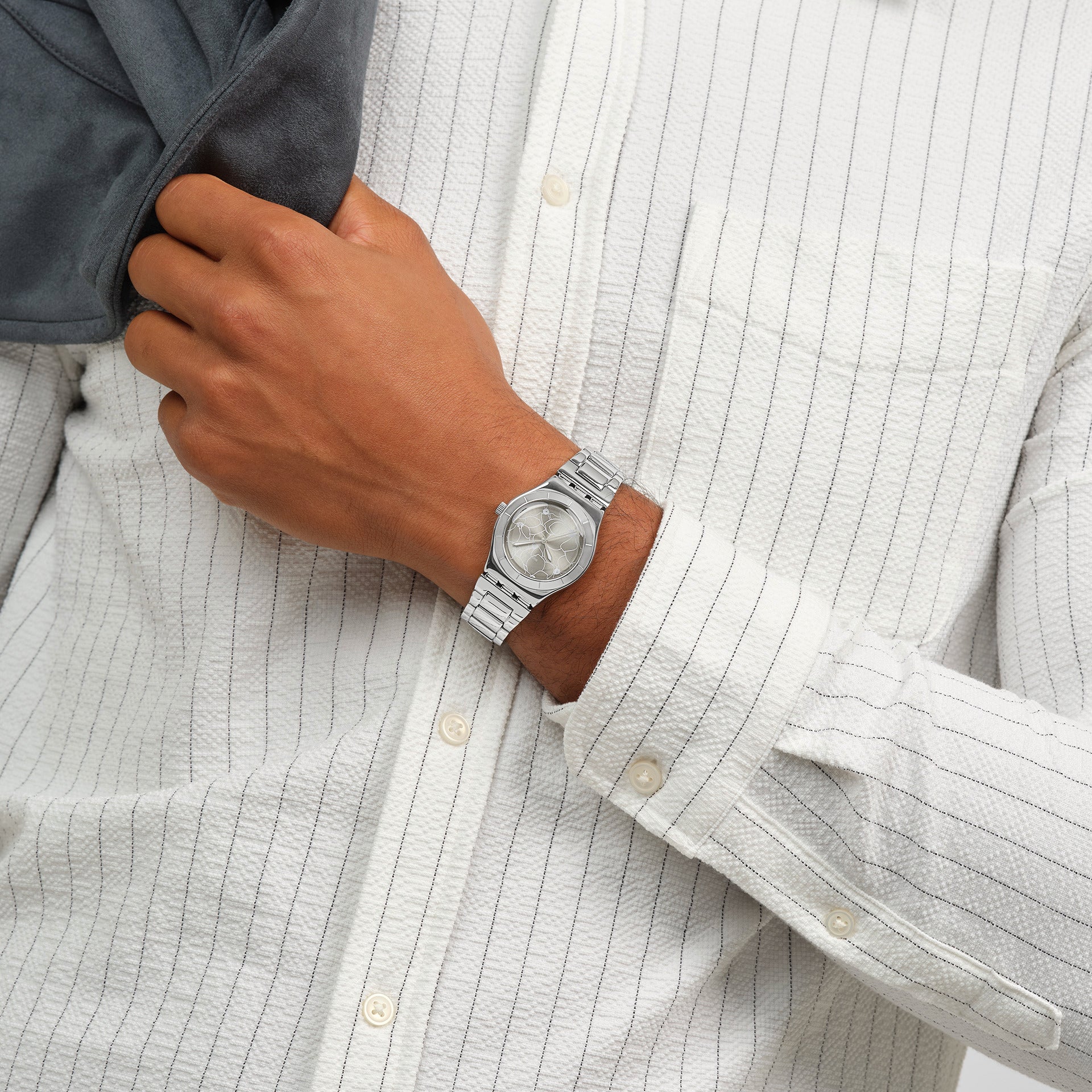 Αυτό το κομψό ρολόι από ανοξείδωτο ατσάλι διαθέτει γκρι sun-brushed καντράν με τυπωμένο λευκό μοτίβο λουλουδιών, ασημί ωροδείκτη και λεπτοδείκτη που λάμπουν στο σκοτάδι και ασημί δείκτη δευτερολέπτων. Το ρολόι διαθέτει γυαλισμένη κάσα από ανοξείδωτο ατσάλι και ταιριαστή στεφάνη με χαραγμένες ενδείξεις ώρας. Το look ολοκληρώνεται με το γυαλισμένο μπρασελέ από ανοξείδωτο ατσάλι με κούμπωμα τύπου πεταλούδα.