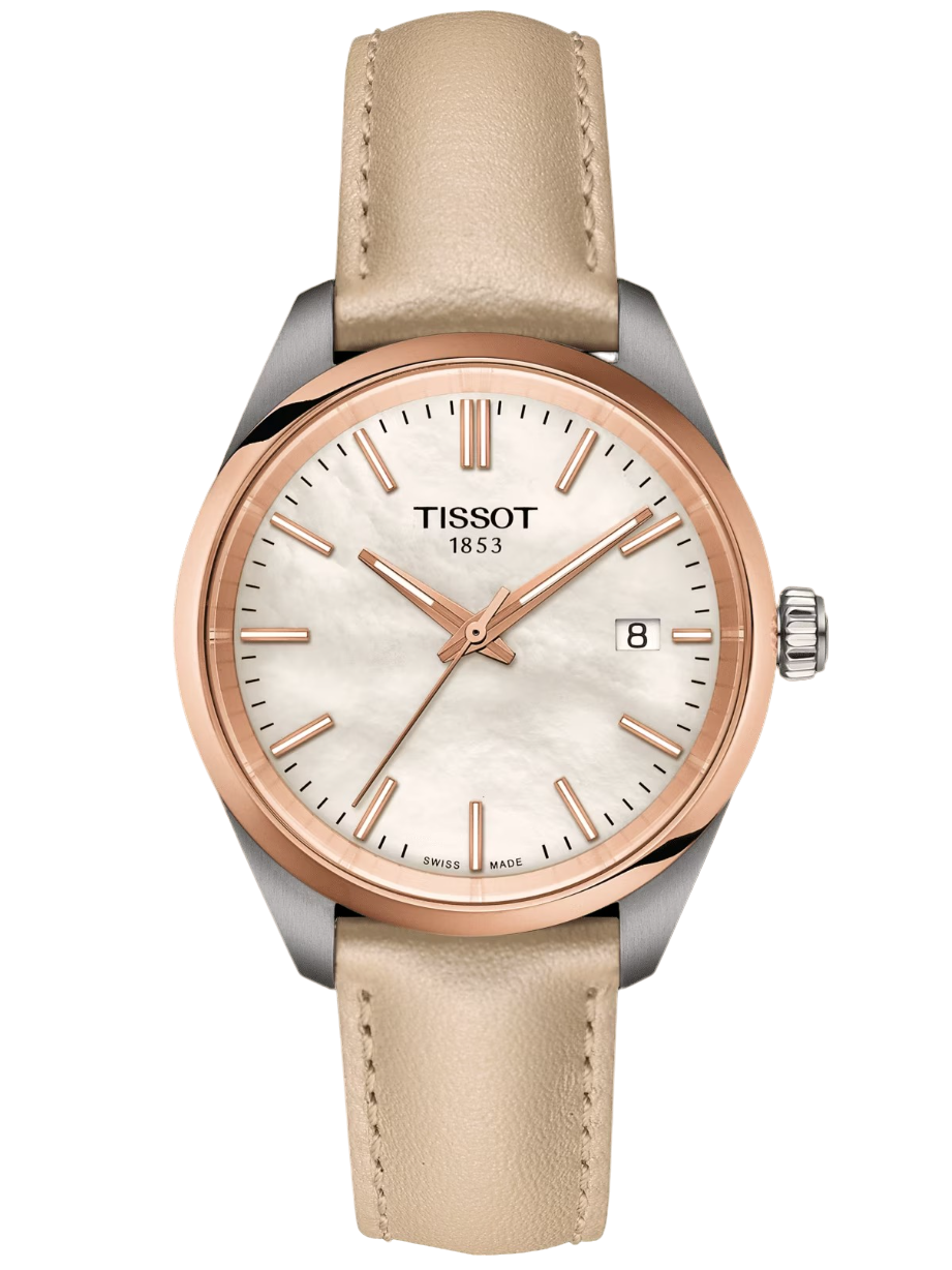 TISSOT PR 100 34MM CREAM LEATHER STRAP T1502102611100